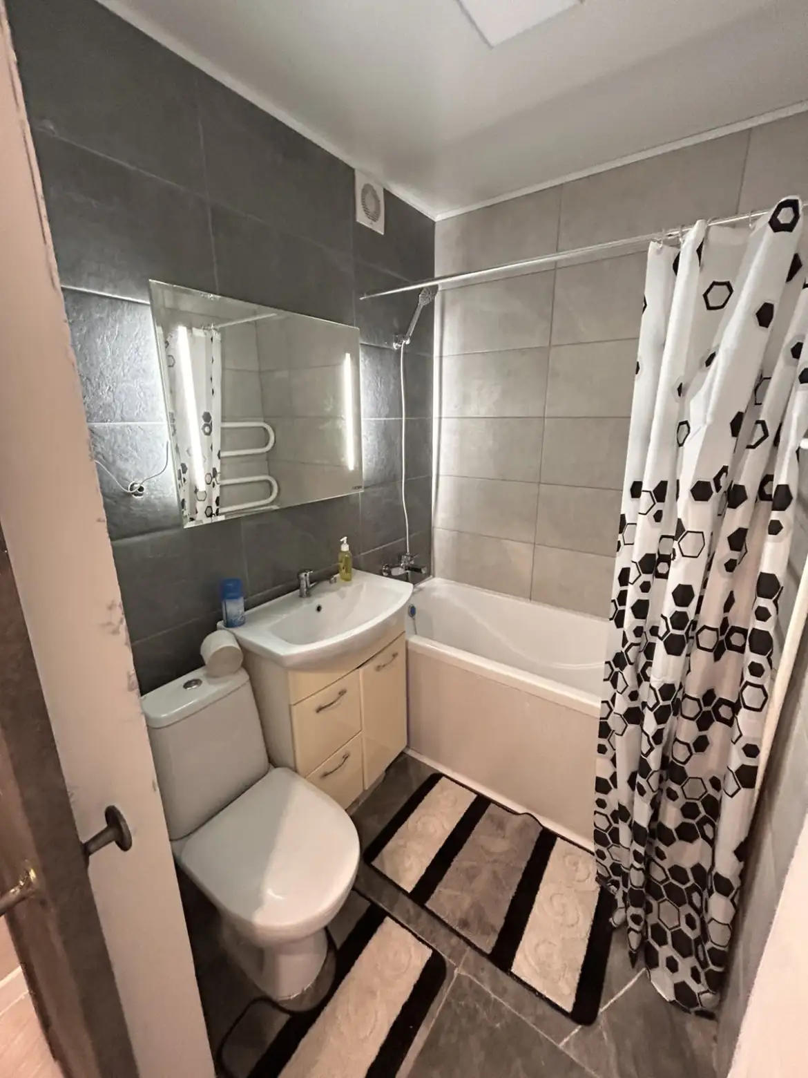 Уютная Квартира с горячей водой и новым ремонтом на сутки / недели есть все необходимое. В Ванне : бойлер !!! полотенца, шампуне - мыльное, фен, стиральная машина , мягкие коврики, ванна со стойкой с тропическим душем.